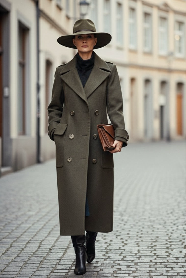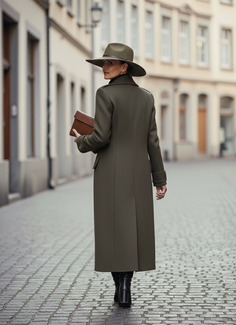 Ein Mantel, der urbanen Chic mit zeitloser Eleganz vereint. Gefertigt aus original Louis Vuitton Wollstoff aus Paris, verkörpert er die Raffinesse französischer Haute Couture und bringt sie in eine moderne, klare Silhouette. Die doppelreihige Knopfleiste, das markante Revers und der lange Schnitt verleihen ihm eine starke, souveräne Ausstrahlung – wie geschaffen für die grossen Boulevards.